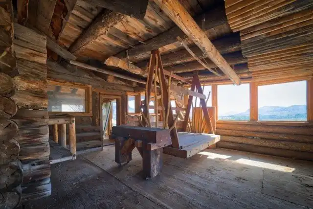 Это строение построил Фрэнсис Ли Смит, который фактически получил неограниченный доступ к бесплатной древесине после пожара на близлежащей горе "Гремучая Змея". Власти разрешили всем желающим забрать поврежденную пожаром древесину, чтобы очистить гору.