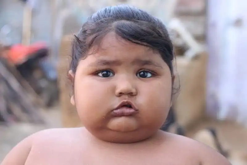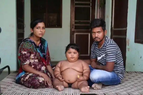 В свои год и четыре месяца девочка из Индии, Чахат Кумар, весит ошеломляющие 25 кг, из-за чего даже не может встать и удержаться на ногах. Причина ее недуга кроется в генной мутации - укорачивании молекулы лептина и нарушении ее структуры. Из-за дефицита данного гормона Чахат терзает постоянное чувство голода, и она набирает вес.
