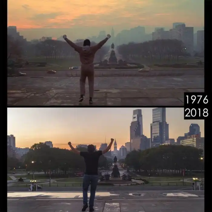 Благодаря парню из Лос-Анджелеса, который путешествует по местам, где снимали топовые блокбастеры, мы можем посмотреть, как за десятилетия все изменилось. Фил Гришаев воспроизводит сцены из фильмов, вставая в те же позы, что и актеры. Узнаете?