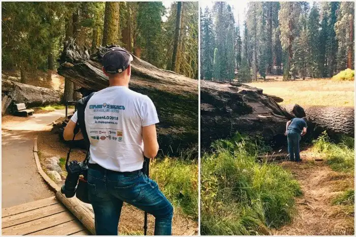 Или, вот, поваленное огромное дерево. На фото видно, что оно просто большое, но на фоне леса не понятно, насколько: