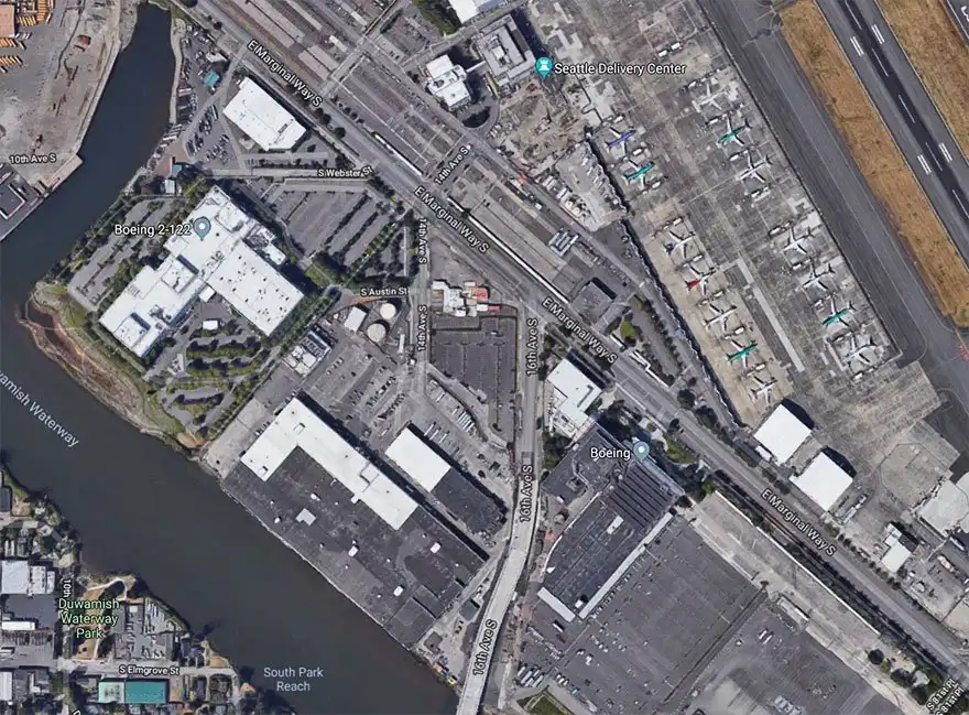Защищая его от потенциальных ударов с воздуха, «окрестности» были построены в 1944 году и удалены через год после войны. Джон Стюарт Детли был голливудским дизайнером, который помог скрыть завод № 2 «Боинг». Используя те же методы, что и в фильмах — поддельные улицы, тротуары, деревья, заборы, автомобили и дома.