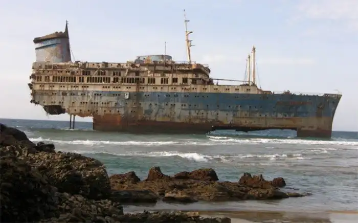 Корабль «Звезда Америки» спустили на воду в 1939 году. За время эксплуатации судно использовалось и как военный транспорт, и как пассажирский лайнер, и как отель. В 1993 году корабль, буксируемый судном «Нефтегаз 67» в Пхукет, где из него должны были сделать пятизвездочную гостиницу, попал в шторм. Буксировочный трос порвался, а закрепить запасной команде так и не удалось. Экипаж судна спустя какое-то время эвакуировали на вертолете, а сам корабль сел на мель возле Фуэртевентуры. Пока владельцы лайнера разбирались с фирмой, предоставившей услуги буксира, и страховыми компаниями, корабль развалился на две части. Фрагменты корабля так и лежат на берегу у Канарских островов, постепенно разрушаясь под воздействием океана.