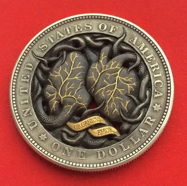 Мастер из Екатеринбурга по имени Роман Бутин регулярно публикует в своем аккаунте в Instagram фотографии и видео уникальных монет и других металлических предметов, от которых просто невозможно оторвать свой взгляд. Мужчина оснащает свои металлические изделия уникальными гравюрами и узорами, которые настолько хороши, что к ним уже давно пора было бы присмотреться сотрудникам из казначейства. Несмотря на то, что Роман работает в сувенирной фирме в Екатеринбурге, его работы уже давно известны за границей. Обязательно посмотрите на эти произведения искусства далее.