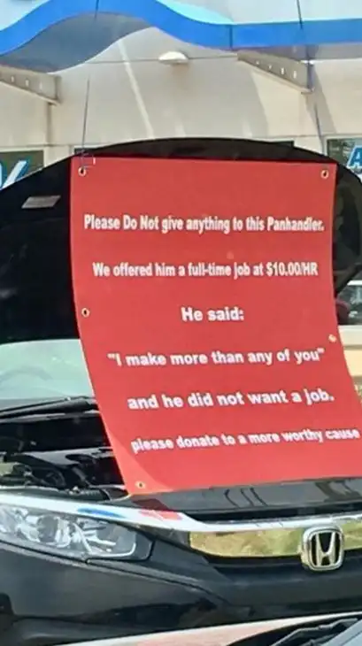 Пусть дураки работают, а я тут с картонкой больше соберу. История фальшивого нищего у дилерской площадки