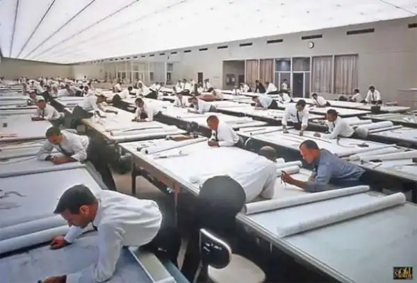 До появления автокада - да и вообще программ разработки чертежей на компьютере - всю документацию делали на ватмане от руки. Десятки инженеров сидели в оупэн-спейсах, а их инструментами были: кульман (инженерная доска), набор карандашей и хорошие знания. Весь процесс был трудоемким и требовал большого старания - в случае ошибки приходилось весь чертеж делать заново. И это было еще не так давно - чуть более трех десятков лет назад; сейчас сделать чертеж гораздо проще, но вот культура инженерного дела уже совсем не та.