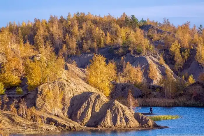 Кондуки, Ушаковские карьеры, Романцевские горы — как их только не называют. Когда-то в советское время здесь проводилась добыча бурого угля закрытым и открытым способом. Пик добычи пришелся на 60-е годы ХХ века, а к 80-м качество сырья начало снижаться, карьеры постепенно стали заполняться грунтовыми водами и в 90-е все шахты были затоплены и месторождение было закрыто.