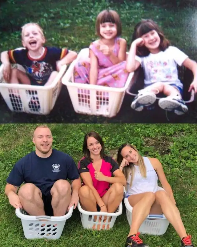 Время не щадит никого и ничего в этом мире, но посмотреть на такие воссозданные фотографии из детства всегда интересно. Люди пытаются повторить позы и даже выражения лиц со своих детских фотографий спустя много лет.