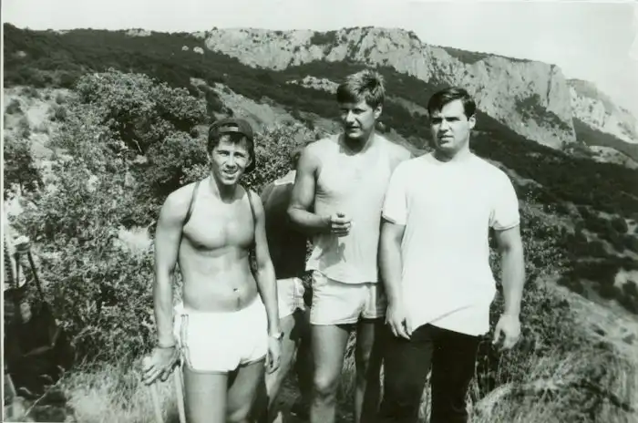 Группа охраны за расчисткой маршрута прогулки Генерального Секретаря ЦК КПСС М.С.Горбачева. Форос, 1988 год.