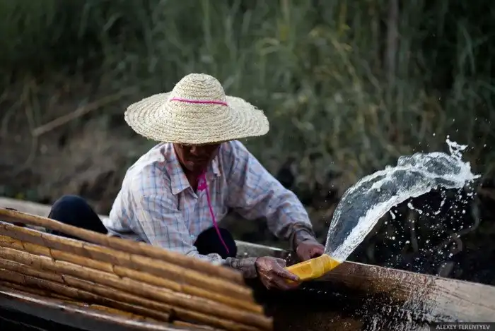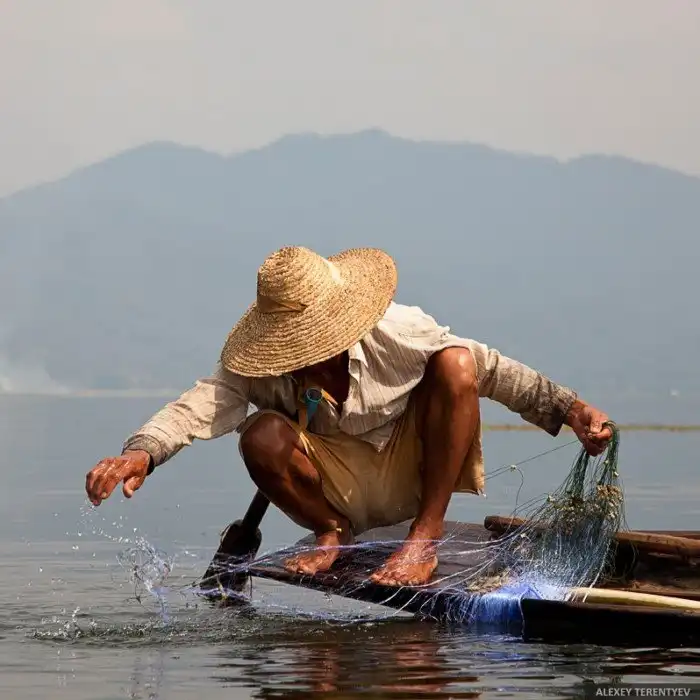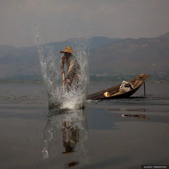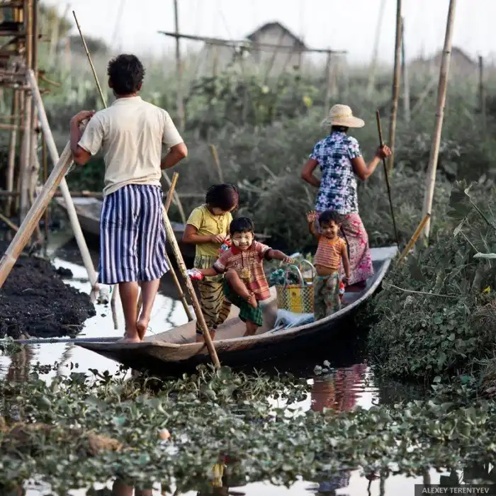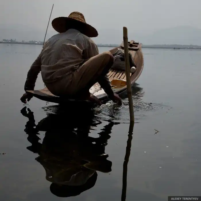 Это фотографии жителей Мьянмы, связавших свою жизнь с водой. Большая часть кадров сделана на озерах Инле и Сангкар в центре страны.