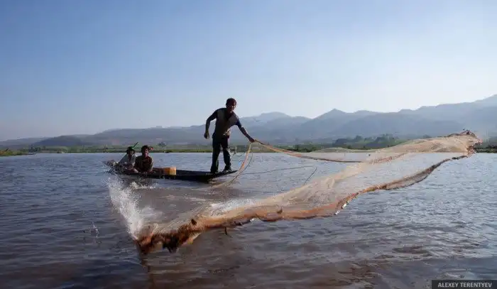 Главное занятие, если ты живешь на воде — это ловля рыбы. И Мьянма не исключение. Рыбу здесь ловят почти все, причем с самого мелкого возраста.