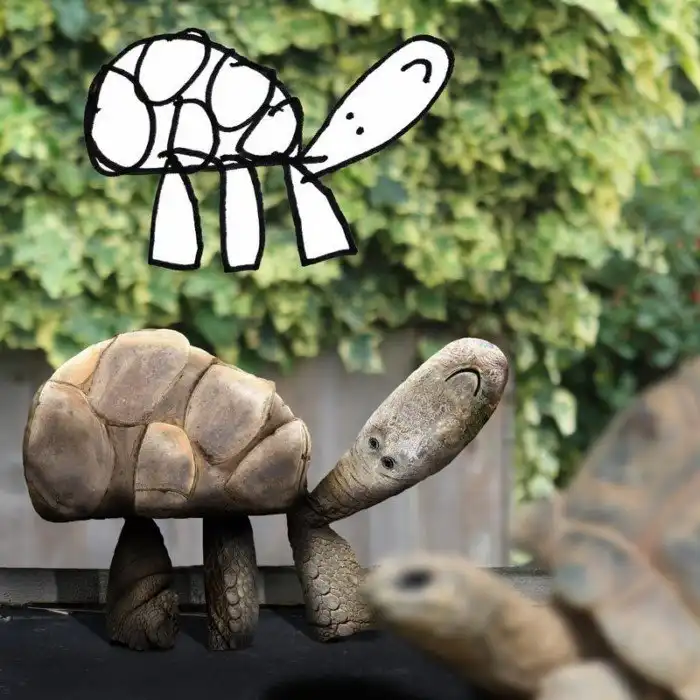 Рисунки шестилетнего Дома разлетелись по всей сети. Забавные персонажи так полюбились суровым дядям и взрослым тетям, что те умиляются и просят мальчика не останавливаться. А он и рад стараться. Папа ребенка регулярно выкладывает его "художества" на собственную страничку в Instagram, и с помощью фоторедакторов показывает, как могли бы выглядеть эти нарисованные люди, животные и даже техника в реальности.