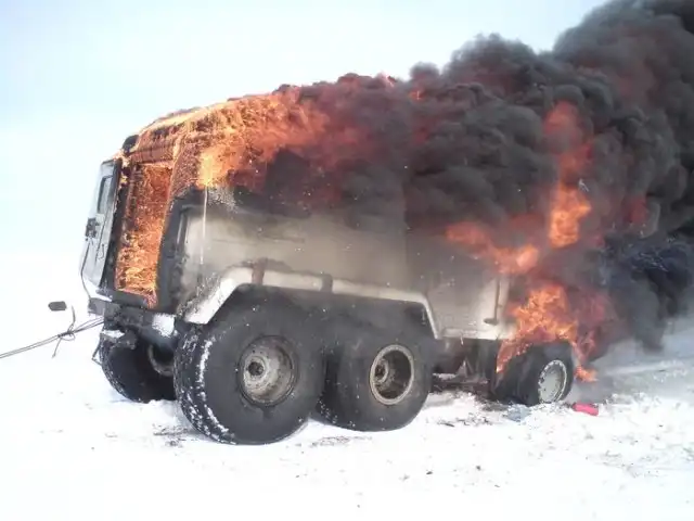 Предлагаем вам взглянуть, как из-за забытой под капотом замасленной тряпки может сгореть дотла внедорожник ТРЭКОЛ. Когда он вспыхнул, водитель ничего не успел сделать.
