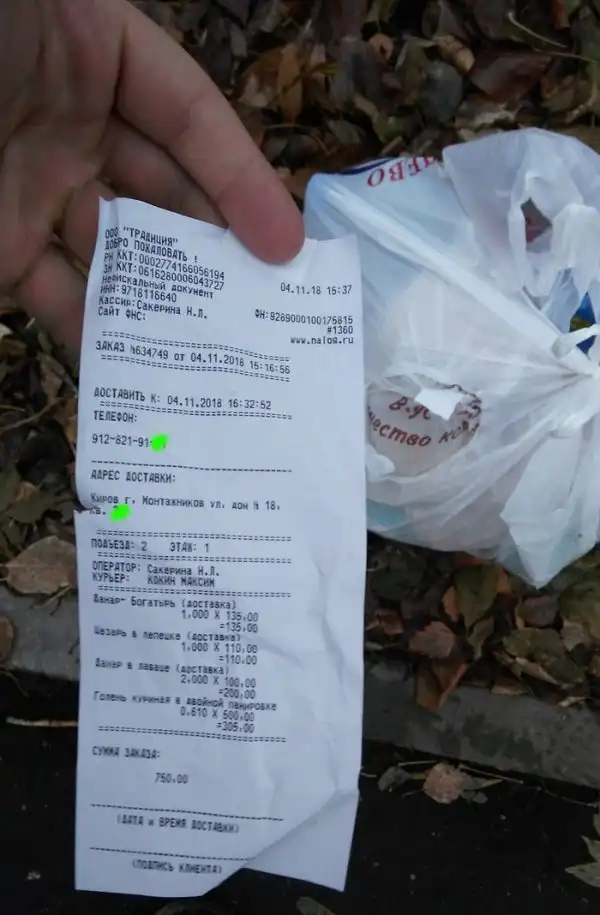 Автор этого поста пишет, что прогуливался по парку Победы в Кирове и обратил внимание на макет с мусором. Подошел, присмотрелся и заметил внутри пакета чек. Как оказалось, пакет "принадлежал" любителям цезаря и динаров, а на чеке был даже указан адрес. Что оставалось еще делать? Вдруг кто-то очень переживал, что не донес свой пакет до мусорного бака и потерял его в парке. Поэтому автор решил доставить его самостоятельно.