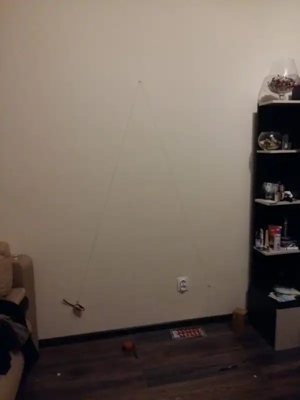 Сначала при помощи самоклеющихся площадок нужно выставить верхнюю точку, а затем наметить остальные крепления от верха с шагом по 10, 15 и по 20 сантиметров.