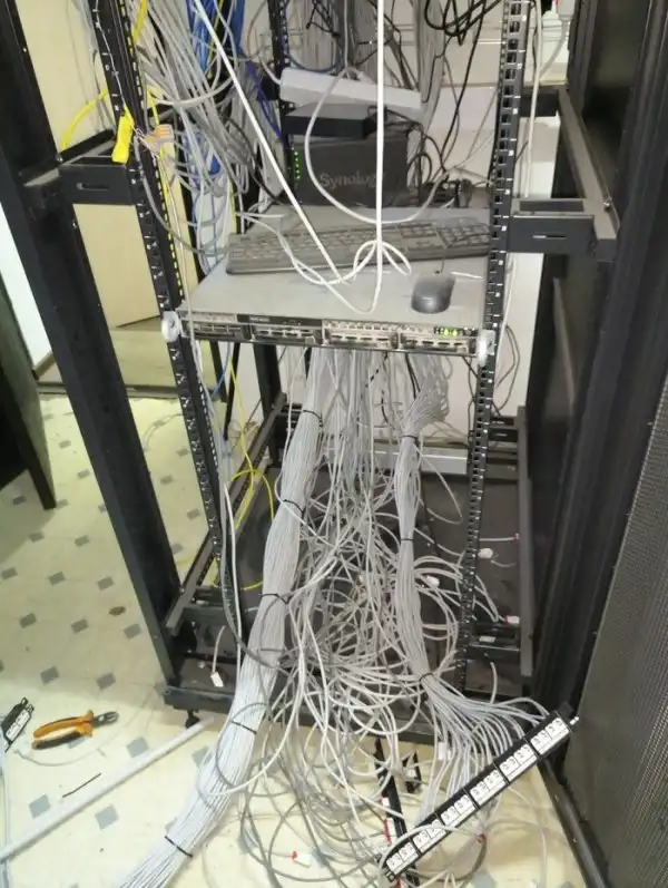 Кто-то не любит наводить порядок, а кому-то приходится наводить порядок после других работников, которые допустили страшный беспорядок. Предлагаем вам посмотреть на то, как преобразилась серверная после того, как автор поста упорядочил все провода.