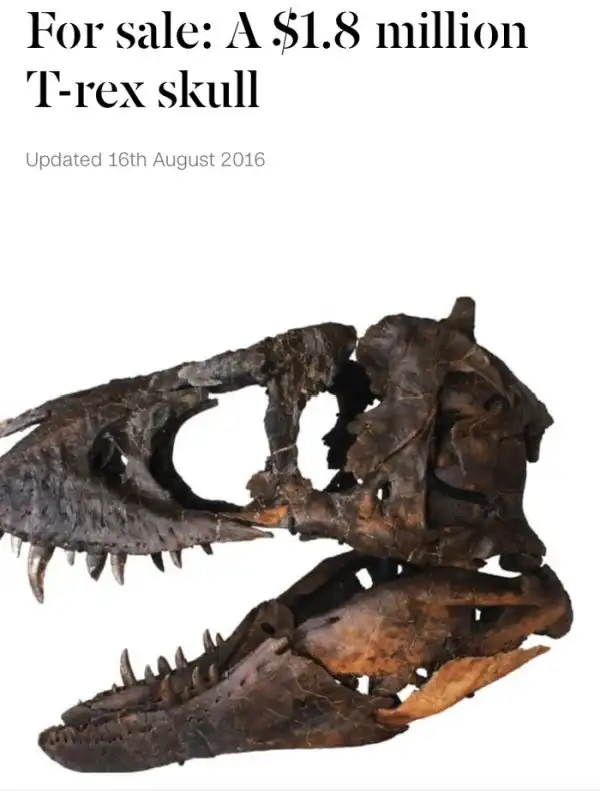 После выхода на большие экраны кинофильма "Мир юрского периода 2", в котором на аукционе продавали живых динозавров, знающие толк в динозаврах люди лишь улыбнулись. В то время, как в фильме давали 3-5 миллионов долларов за живого динозавра, сегодня мы хотели бы рассказать вам, сколько сейчас стоят некоторые части "мертвых" динозавров.