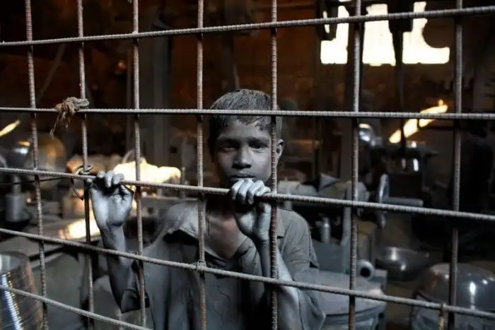 "Нет, теперь я не хожу в школу. Мне пришлось выбирать между школой и возможностью заработать на хлеб, накормить мать и младших братьев. Мой отец умер в прошлом году от сердечного приступа прямо здесь, на фабрике, рядом с горном, где он плавил металл. Здесь страшно жарко, никто не сможет здесь работать без привычки. Он был очень сильный и привык работать в жаре. Он много работал ради нас. Никто не верил, что он может умереть от этой жары. После смерти отца я получил его работу. Я работаю тем же молотком, на том же станке. Но я не такой сильный, как он. Я все время уставший, голодный и хочу спать. Я скучаю по школе, по играм с друзьями, по купанию в нашей речке у дома. Когда было жарко, папа покупал мне разноцветное мороженое. Я ужасно скучаю по этому мороженому здесь, на фабрике, в этой ужасной жаре. У меня есть дядя, который иногда покупает мне мороженое и помогает с работой, когда я не могу справиться. Он всегда говорит: "Мы нужны друг другу". Я хочу стать таким, как он. Я хочу сделать так, чтобы у людей не было столько несчастий", - Рони.