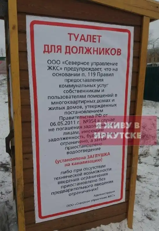 Иркутская управляющая компания решила "креативно" подойти к вопросу борьбы с должниками и начать запугивать их, устанавливая прямо перед их домами вот такие туалеты. По словам представителя компании, подобным образом они собираются поступить абсолютно со всеми должниками. Но тогда появляется вопрос: "Где они собираются взять столько туалетов?".