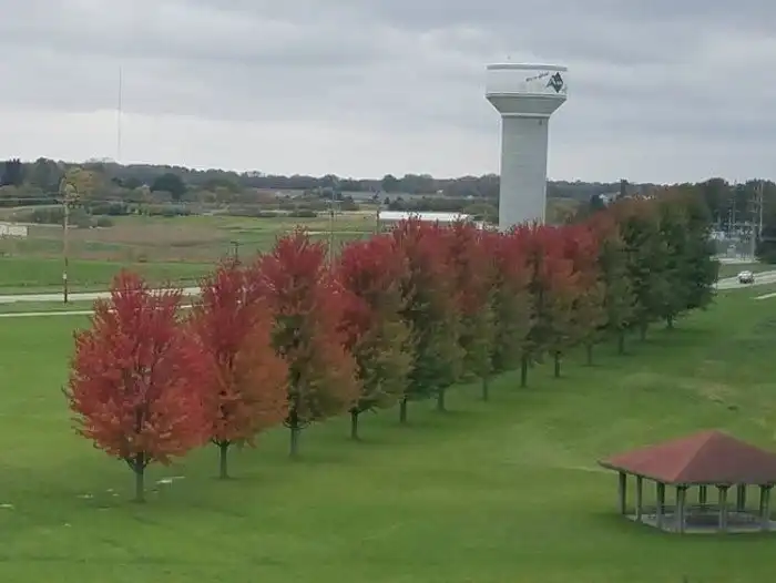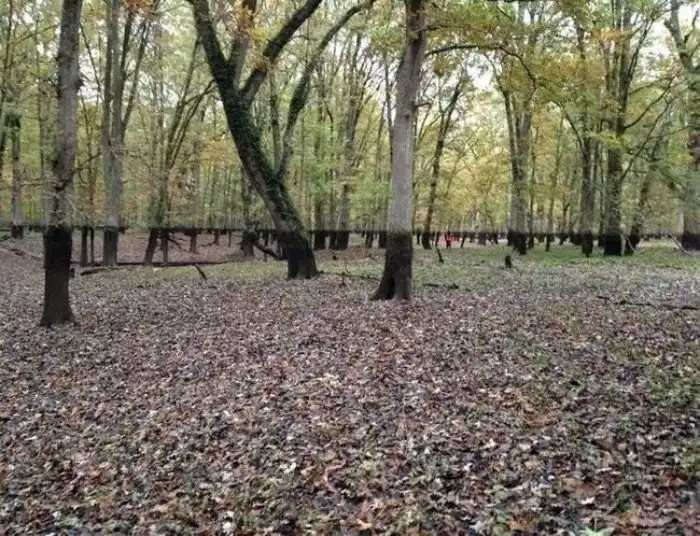 13. Деревья в осушенном пруду образуют идеально ровную линию