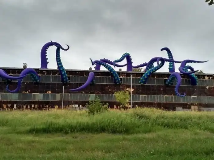 8. Творческая инсталляция в виде Кракена в заброшенном здании