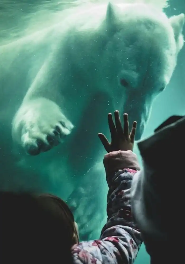 16. Полярный медведь приветствует маленькую девочку