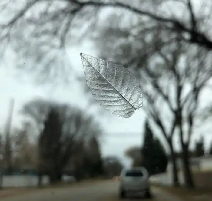 20. Отпечаток листа на лобовом стекле машины