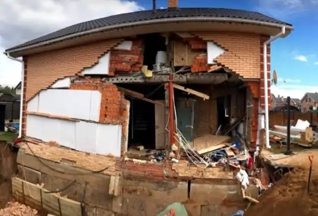 Владелец этого частного дома решил сделать пристройку, но пожалел об этом. Все дело в том, что он углубился ниже подошвы фундамента, что привело к необратимым последствиям.