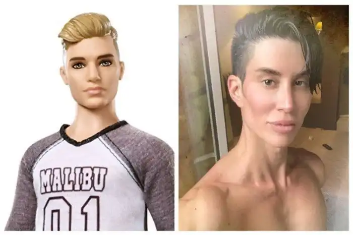А вот Джастин Джедлика, который очень хотел быть похожим на куклу Кена. На превращение у него ушло около 200 тысяч долларов