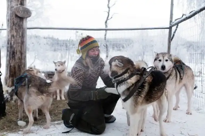 Тинья содержит 85 ездовых собак, и ей нравится за ними ухаживать: кормить, чистить клетки и обучать ездовому спорту.