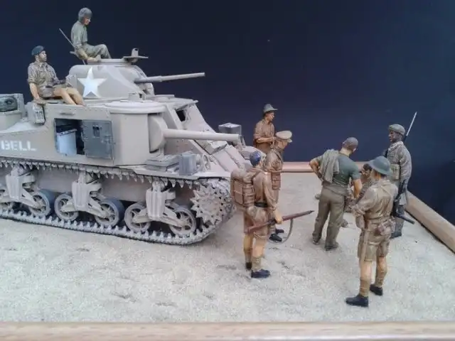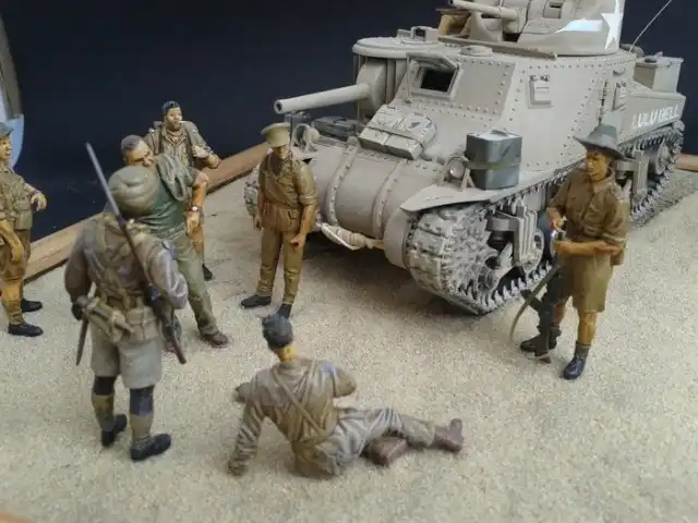 В 1995 году на большие экраны вышел кинофильм "Сахара", в котором сыграл известный актер Джеймс Белуши. Сюжет фильма построен вокруг танка со смешным названием "Лулу Белл", который отступает вглубь Сахары в 1942 году и занимает оборону возле единственного колодца, чтобы не дать отряду немцев прорваться в свои тылы. Предлагаем вам посмотреть на креативную диораму, созданную по мотивам этого фильма.