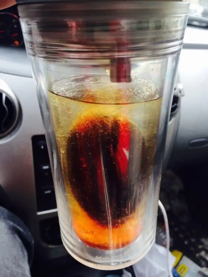 «Я оставил чай в машине на ночь, и к утру он стал выглядеть вот так»