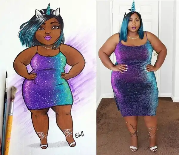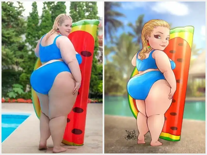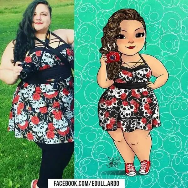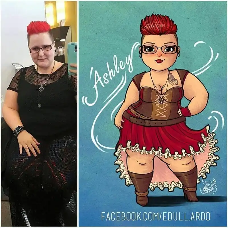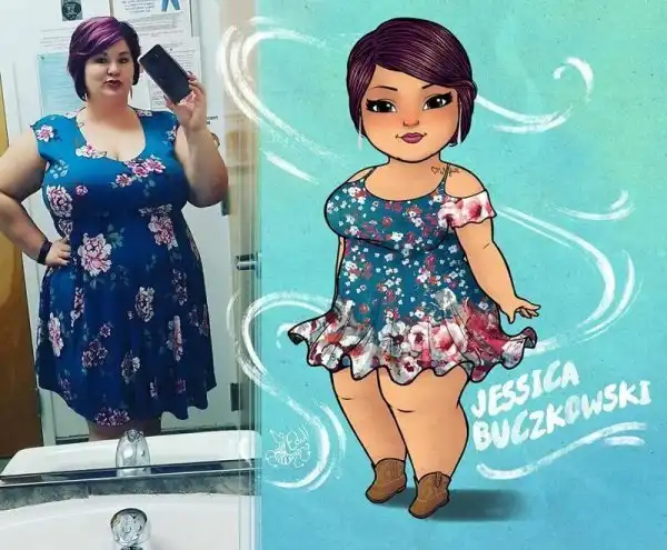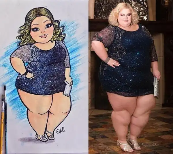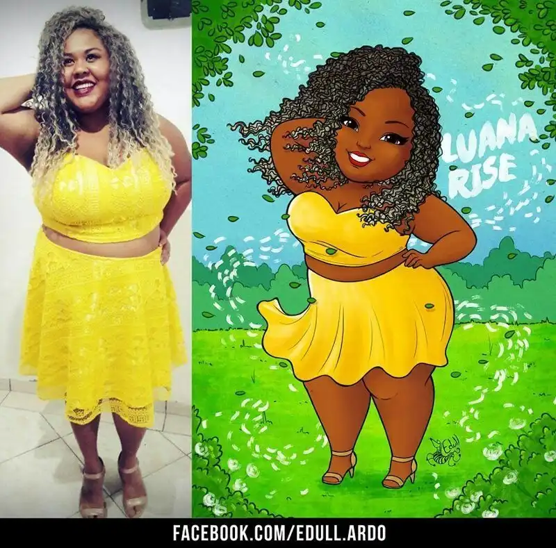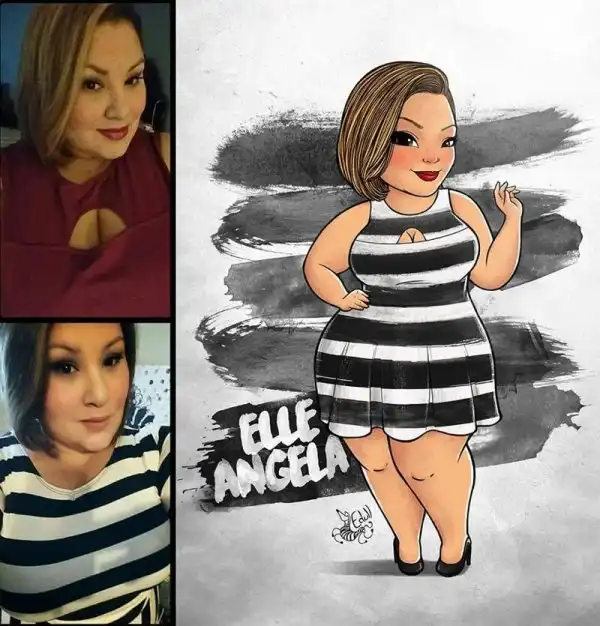 Художник создаёт мультяшные портреты полненьких женщин, чтобы показать, как они красивы