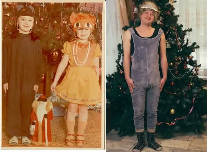 Помните свою первую ёлку? Актеры воссоздали новогодние фото, которые возвращают в детство