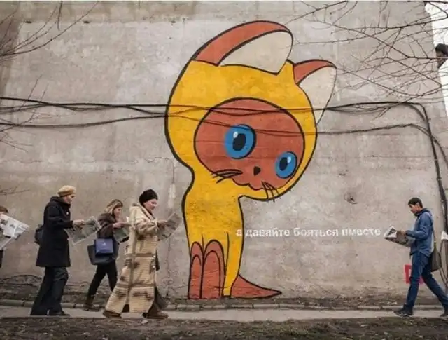 Предлагаем вам взглянуть на подборку старых добрых уличных рисунков, которые радуют глаз жителям различных городов. Персонажи мультфильмов, известных советских кинофильмов и просто интересные сатирические изображения - всё это вы увидите далее.