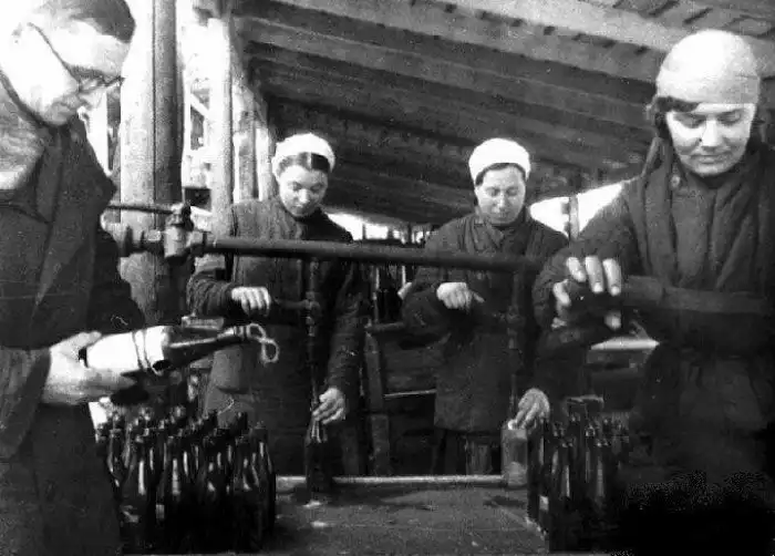 14. Изготовление бутылок с зажигательной смесью для борьбы с танками противника на заводе Москвы, 1941