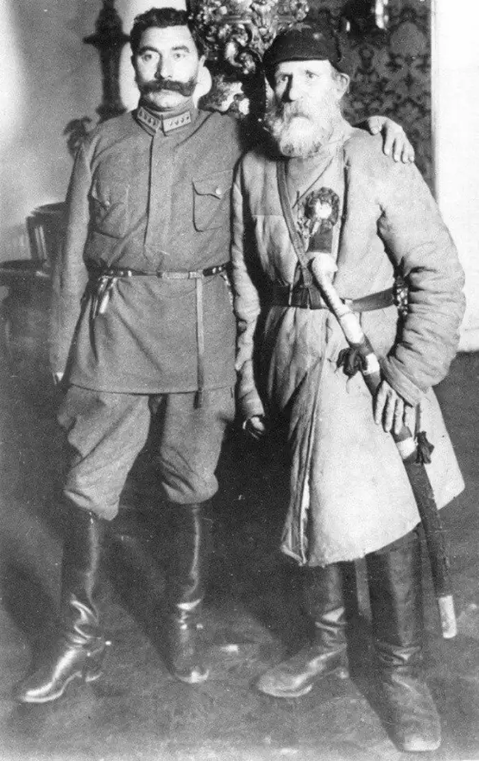 Семён Михайлович Будённый и Фёдор Степанович Гуляев, который в августе 1919 г. завёл в болото 700 колчаковских кавалеристов.