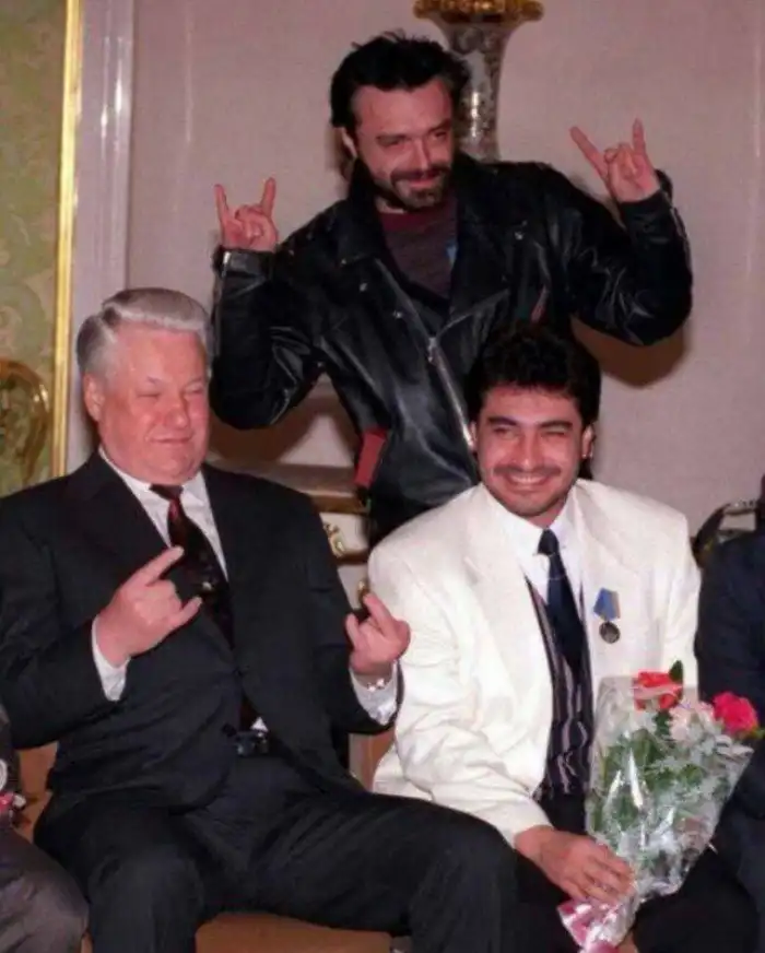 Борис Ельцин встречается с участниками группы "АлисА". Москва. РФ. 1993 год.
