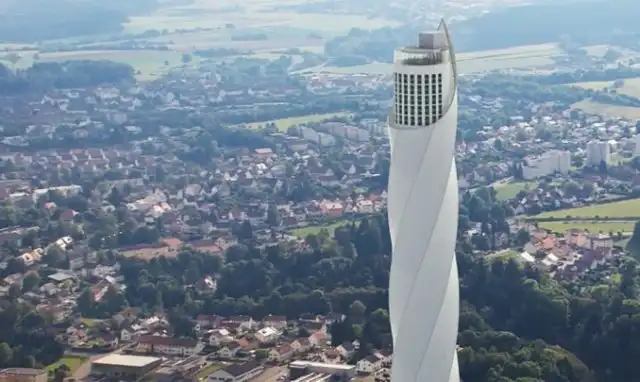 Называется это строение - испытательная башня ТКТ, а создана она была для тестирования скоростных лифтов. Расположено это инженерное сооружение в Ротвайле, Германия, а построено оно было немецким концерном ThyssenKrupp, который занимается производством лифтом и эскалаторов.