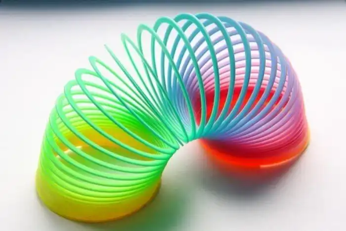 Слинки, пружинка, радуга – несколько названий одной игрушки, пользовавшейся популярностью в 90-х. Пожалуй, мало тех, кто не был её обладателем. Пружинку можно было перекидывать из одной руки в другую, успокаивая нервы. Наверняка, глядя на картинку, вы услышите треск «перетекающих» витков. Радуга обладала уникальной способностью – она «шагала» вниз по ступенькам, вызывая необычайный восторг. Диаметр колец позволял девочкам надевать пружинку на запястье и ходить с ней как с браслетами. Был у игрушки один минус – при неосторожном обращении с ней она запутывалась и если ее не осторожно распутать, то теряла свои свойства.