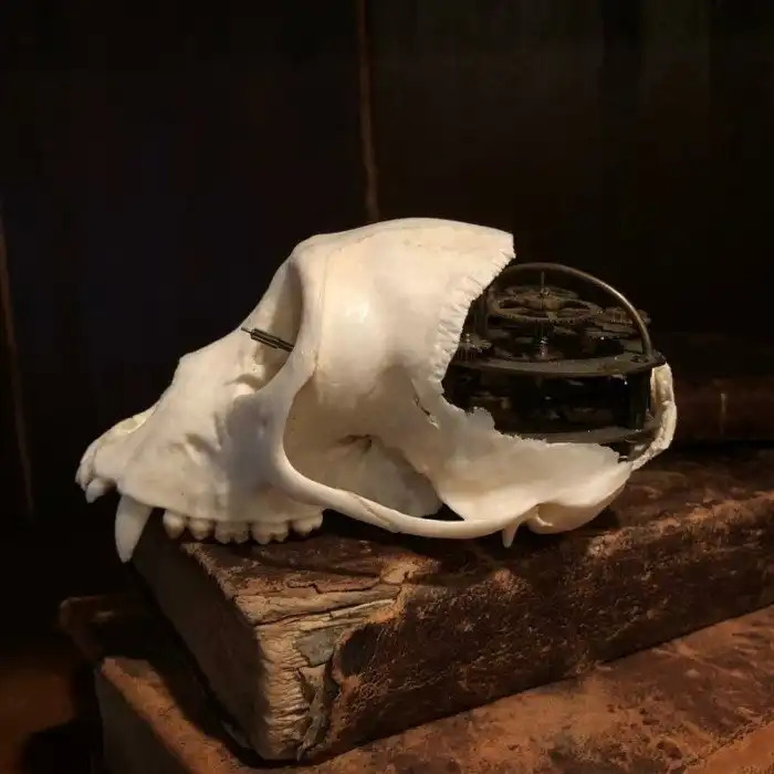 1. Настоящий череп обезьяны + часовой механизм. P.S. Украшение интерьеров черепами- это настоящий тренд