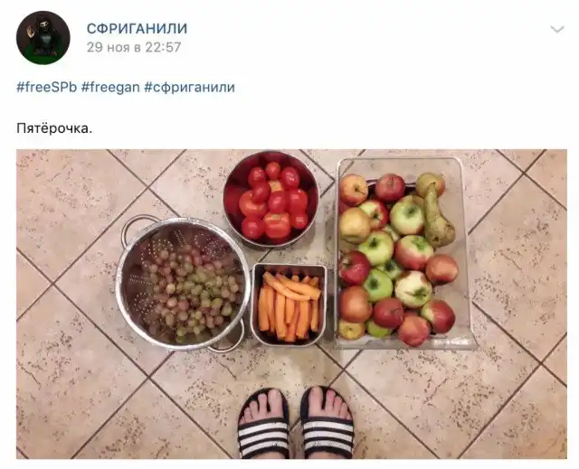 Фриганы пишут в сообществе, что большинству из них по карману закупаться в магазинах, но они все равно используют альтернативные стратегии выживания. В пабликах, посвященных фриганству, ребята делятся фото своей добычи и рассказывают о местах, где можно поживиться.