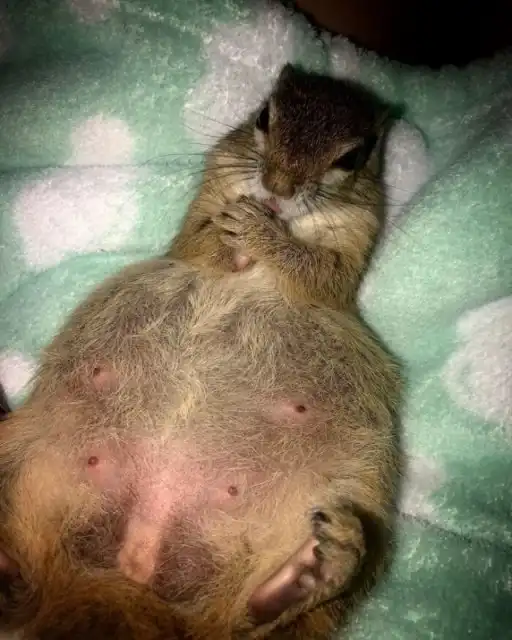Жительница ЮАР по имени Симона Серфонтейн два года назад нашла на окраине леса новорожденного бельчонка, который, видимо, упал с дерева. Она подобрала бельчонка, выходила его и назвала Дигентджи. Белка целыми днями гуляла в лесу, но на ночь всегда возвращалась домой. Спустя год, Дигентджи вернулась домой беременной, и теперь у Симоны в доме появилось подрастающее поколение.