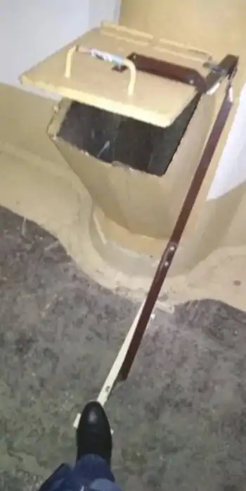 Согласитесь, что всегда неприятно открывать мусоропровод в подъезде руками. Ведь так? Но, видимо, народные умельцы смогли решить и эту проблему, придумав вот такую нехитрую систему для открывания крышки.