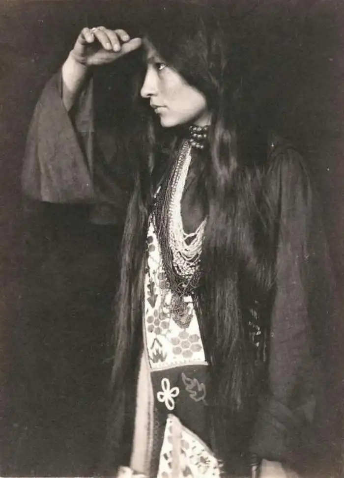 22. Американская индейская писательница из племени янктон-сиу Зиткала-Ша, 1898 год.