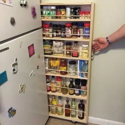 Тот случай когда используется каждый сантиметр кухни. Крепить можно на обычный двусторонний скотч.