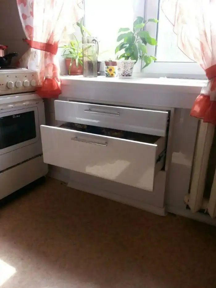 Обустройство ниши "холодильника" под окном на кухне