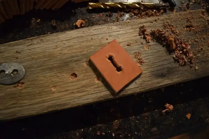 А потом насадил их на рукоятку молотка. Обратите внимание - он специально вверху и внизу поместил по кусочку более темного цвета, чтобы повторить оригинальный рисунок
