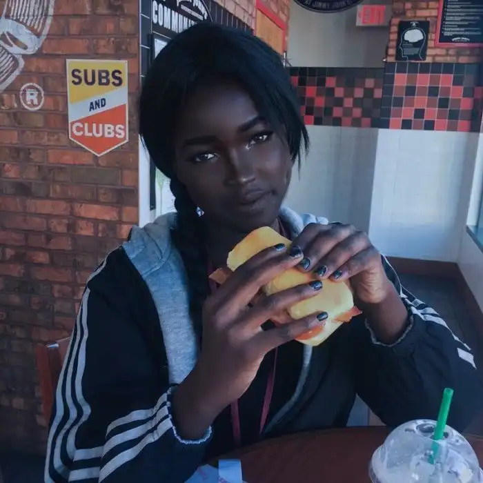 Даки, или "Черная Барби", родом из Южного Судана, но живет и работает моделью в Нью-Йорке. У нее стандартная для этой профессии внешность: большие глаза, тонкие черты лица, минимум жира на боках и гладкая, красивая кожа.
