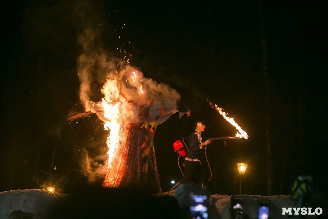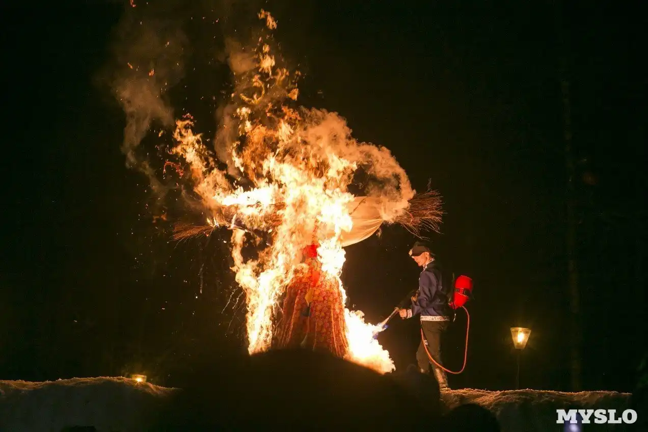 Вчера мы показывали вам, как в парке "Аргамач" сожгли чучело Белого Ходока, а сегодня в сети были опубликованы кадры с празднования Масленицы в Туле. Там парень в нарядной одежде и с цветочком на голове при помощи настоящего огнемета поджег чучело зимы.