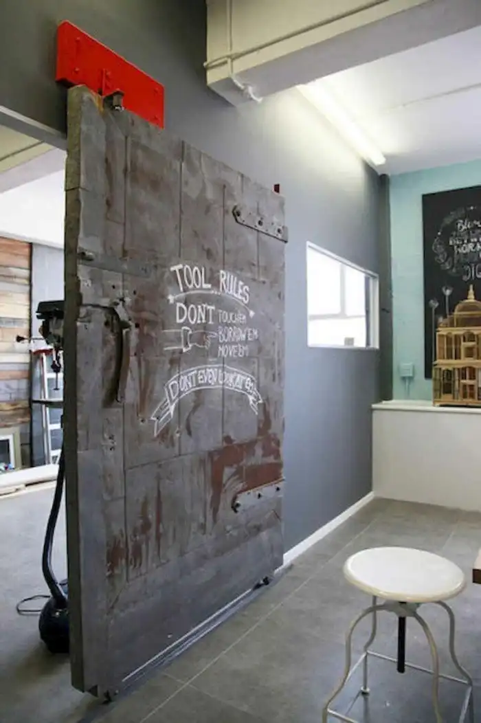 Это так называемый индустриальный стиль дверей. И хотя они ездят на роликах вес у них не малый